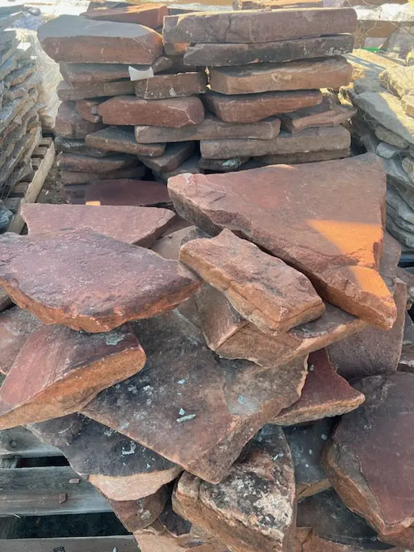 From individual Pieces to Full pallets, our flagstone ranges in many different colors and sizes, Our flagstone is sourced From all over the United states and some imported. All flagstone is weighed by the pound and can be pick up same day or delivered by flatbed to your home or jobsite.
